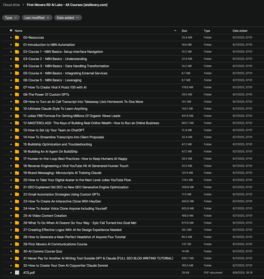 - 40+ Comprehensive AI Mastery Courses: Master cutting-edge tools including Claude Pro, ChatGPT Advanced, HeyGen video avatars, n8n workflow automation, and BuildShip AI agents through step-by-step implementation courses covering AI content systems, personal brand building, autonomous agent creation, viral marketing frameworks, and AI-human hybrid workflows—all updated weekly with the latest breakthroughs.